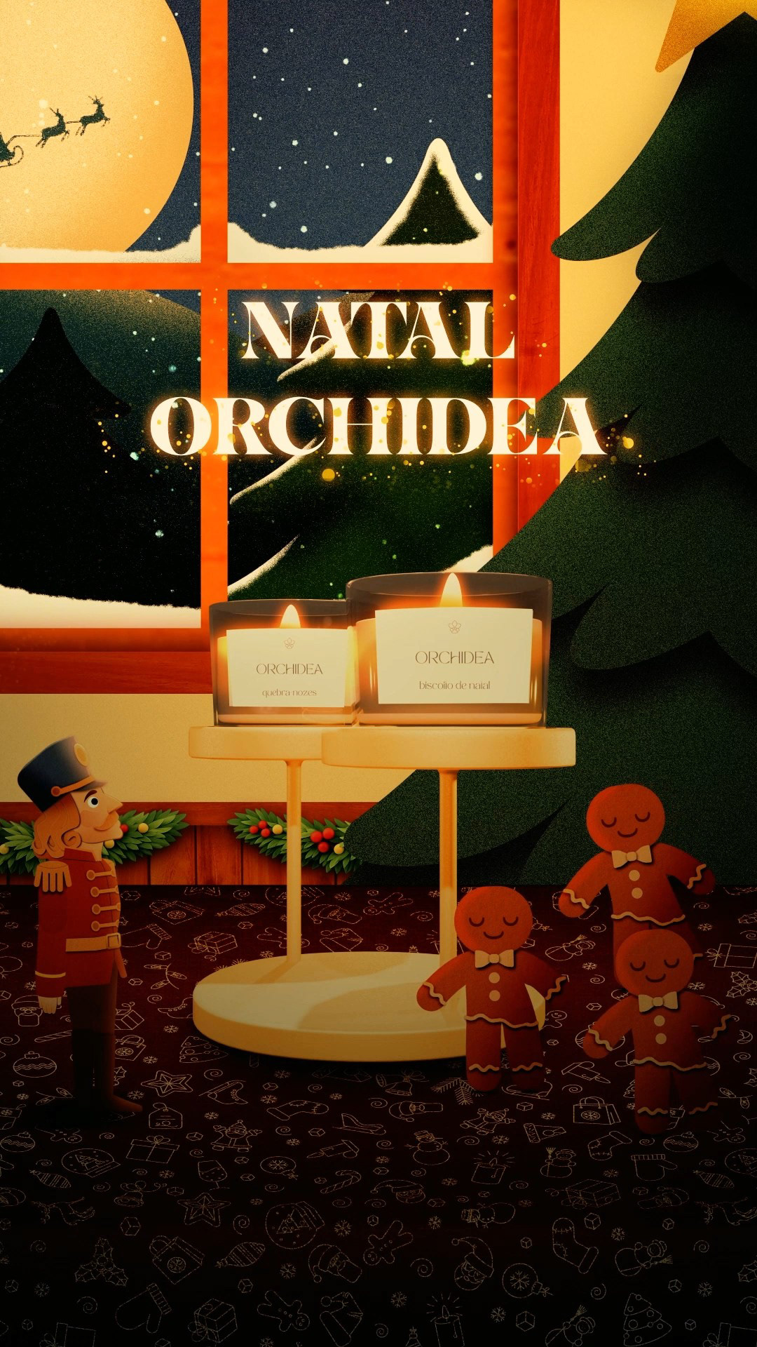 The idea was to tell a simple story with a clear emotional arc: a Nutcracker character marches through a wintery night until a scent suddenly catches his attention. His routine breaks, curiosity takes over, and he starts running, following the aroma until he finally reaches the source: the Orchidea candles, revealed like a small magical discovery.